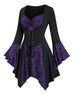 Halloween Women's Gothic Skull Print Top with Lace-Up Waist
