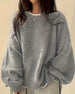 This knitted sweater combines a roomy silhouette with timeless simplicity. Lightweight yet cozy, with ribbed cuffs and hem, it’s ideal for casual days, lounging at home, or layering for a chic, laid-back look.