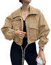 Embrace your unique style with this cropped jacket zip up oversized utility short coat that's versatile enough for any occasion, whether you're going for a casual or dressy vibe. With the Buckle Crop, you'll feel confident and fabulous all day long!