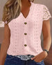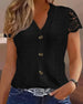 Women's Black V-Neck Lace Trim Button-Front T-Shirt