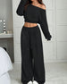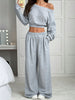 Women's Casual Solid Color Hoodie Set, One-Shoulder Design, Loose Knit Short Top Long Sleeve, Fashionable & Comfortable Wear