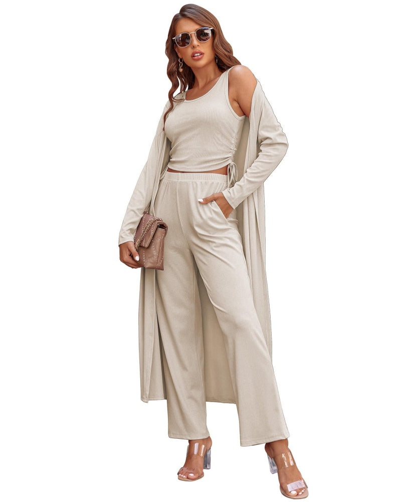 Experience understated comfort with this women's lightweight 3-piece sleepwear set sportswear, designed in a soothing palette and a relaxed silhouette. Its skin-friendly fabric and versatile design make it your new favorite for everything from lazy weekends to casual errands—a piece that truly helps you elevate the everyday.