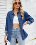 Women's Plain Button Front Drop Shoulder Curved Hem Denim Jacket