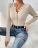 Experience understated comfort with this women's ribbed knit sweater with button front, designed in a soothing palette and a relaxed silhouette. Its skin-friendly fabric and versatile design make it your new favorite for everything from lazy weekends to casual errands—a piece that truly helps you elevate the everyday.