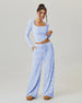 Women's Slouchy Square Neck Stripe Long Sleeve Crop Top & Low-Rise Wide Leg Trousers Co-ord